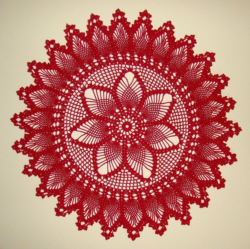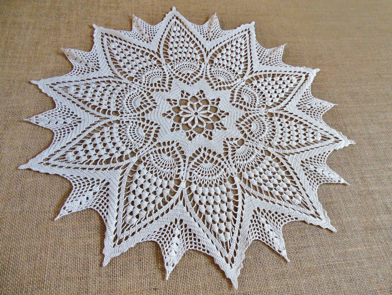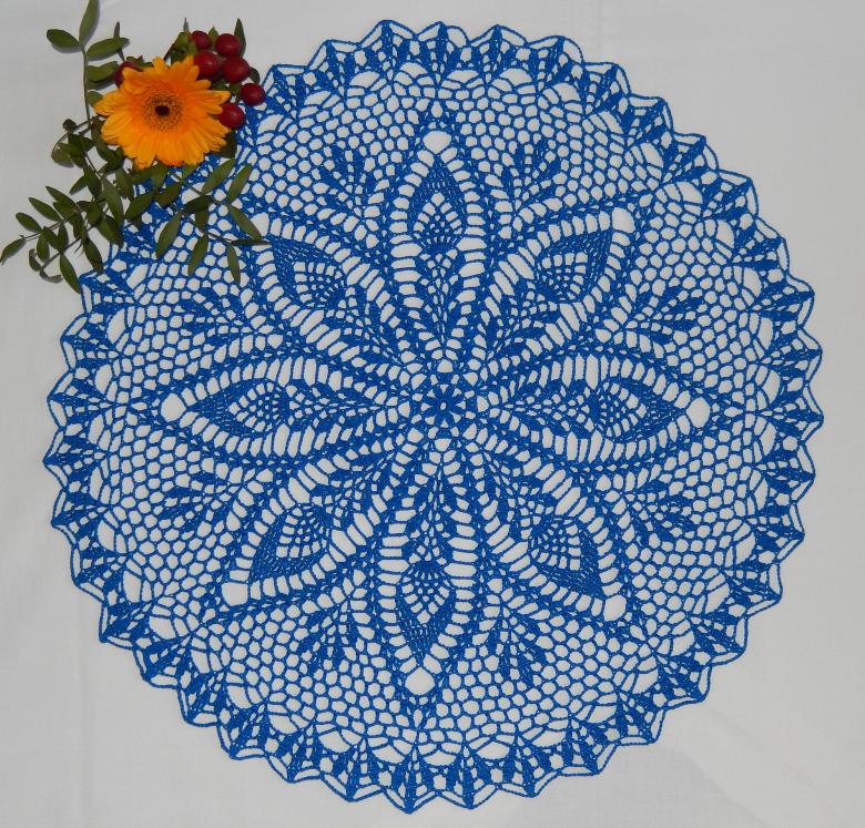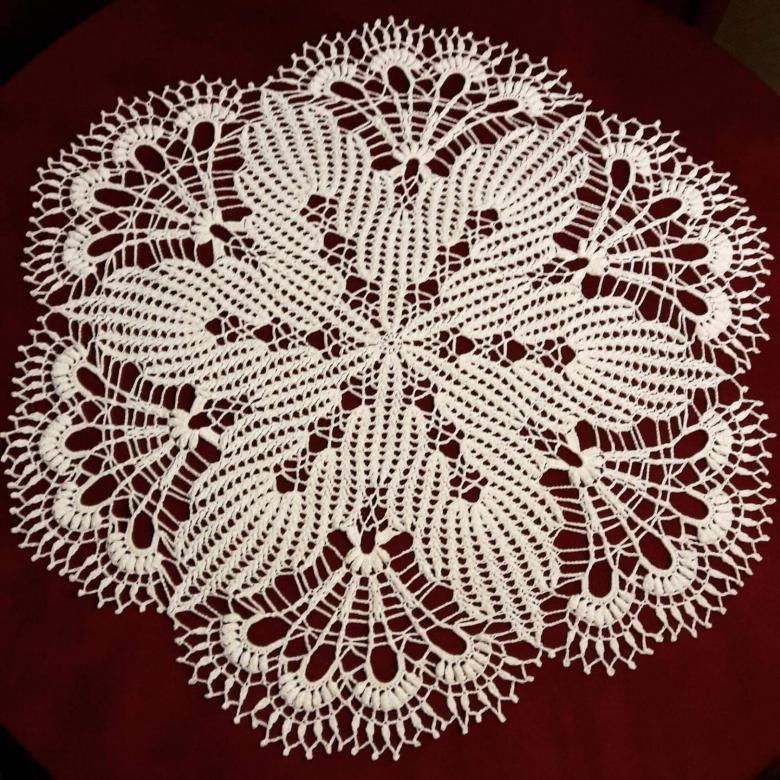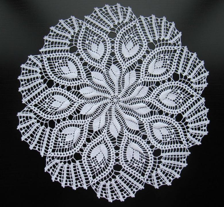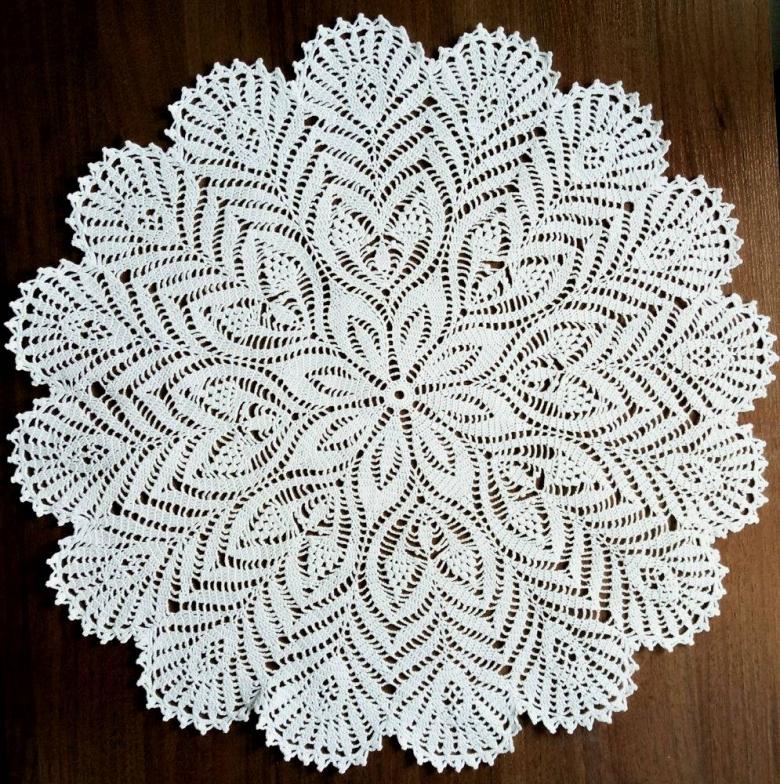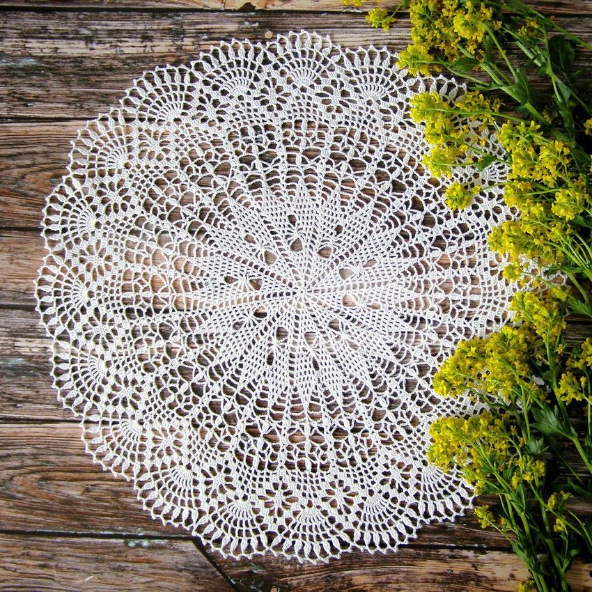 Cette belle dentelle blanche comme la neige, d'un diamètre de 48 cm, est tricotée avec 325 m / 50 g de fil de coton et un crochet de 1 - 1,25 g.