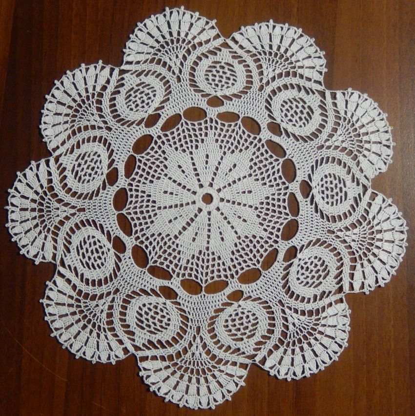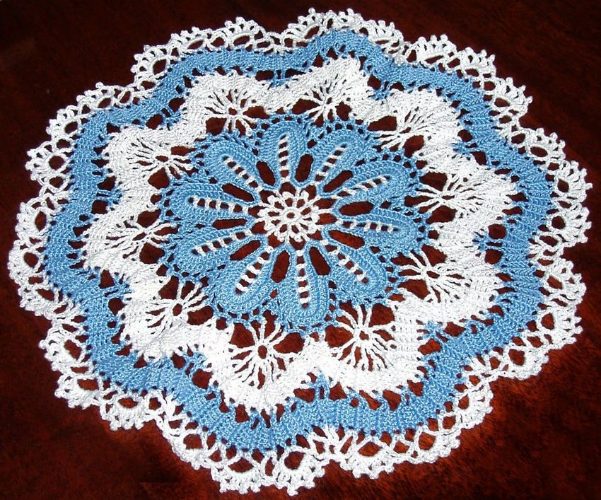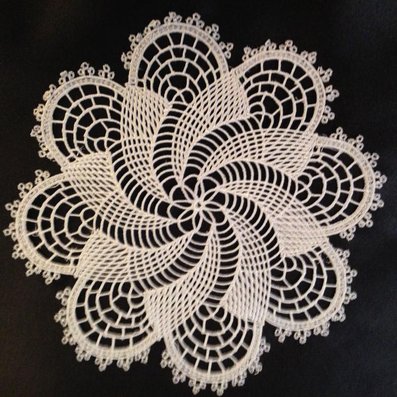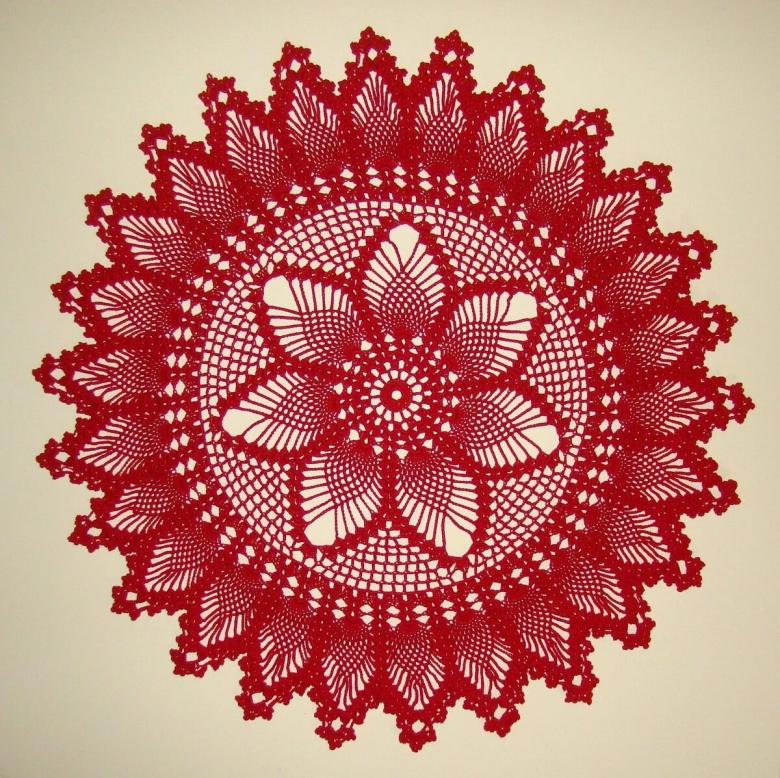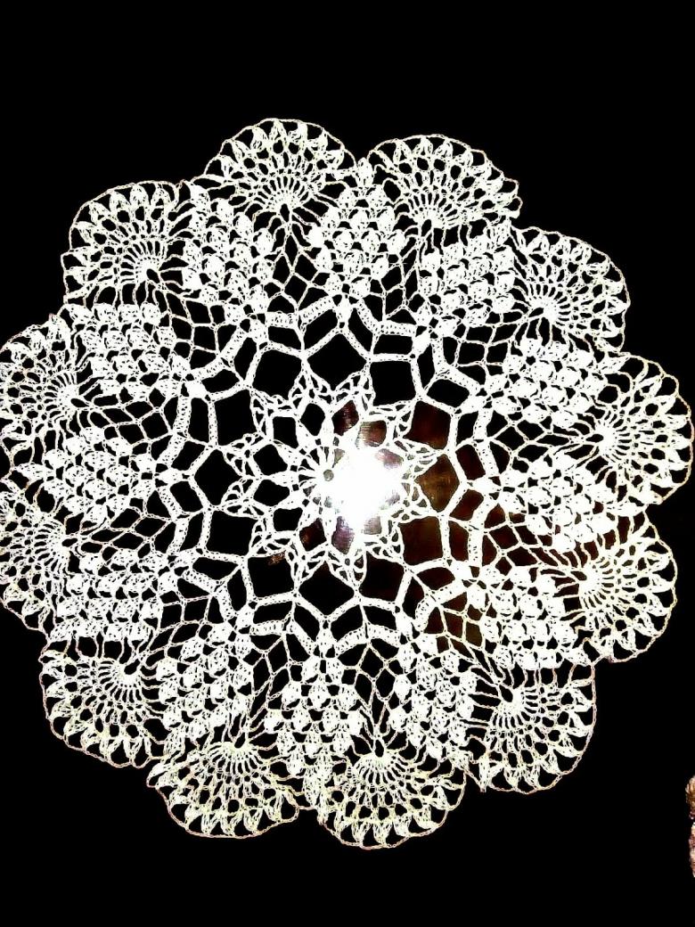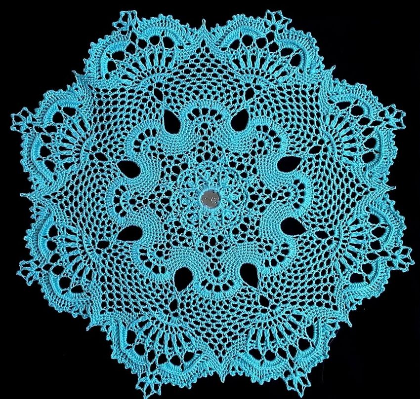 Cette belle dentelle blanche comme la neige, d'un diamètre de 48 cm, est tricotée avec 325 m / 50 g de fil de coton et un crochet de 1 - 1,25 g.