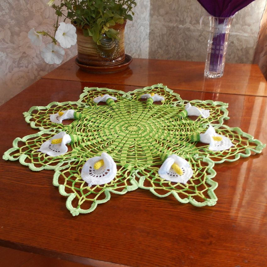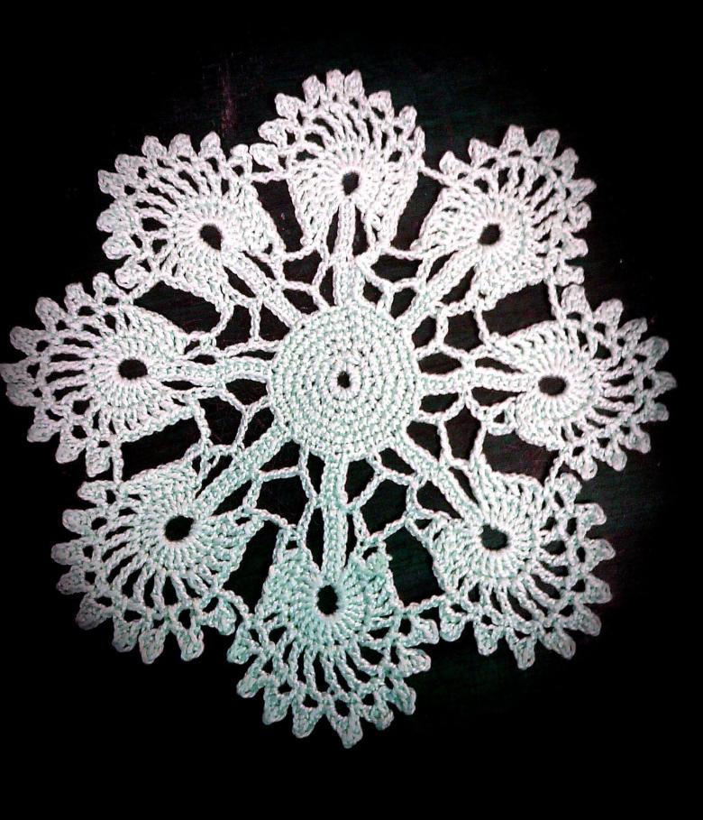 Ce petit et délicat flocon de neige vous aidera non seulement à décorer votre table et votre rideau, mais peut également être utilisé comme fond pour un verre, un vase ou une carafe. Les flocons de neige mis ensemble peuvent faire une belle nappe ou un couvre-lit.