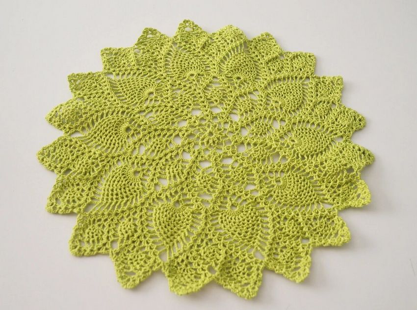 Si la maison a besoin d'un bel abat-jour, vous pouvez tricoter plusieurs de ces accessoires et les coudre au sommet d'un ballon gonflé. Enduisez ensuite le tissu de colle PVA et, après séchage, faites éclater le ballon à l'intérieur de la création. L'abat-jour au crochet est prêt dans une forme ronde !
