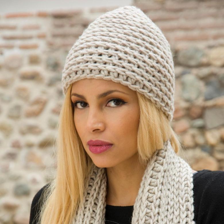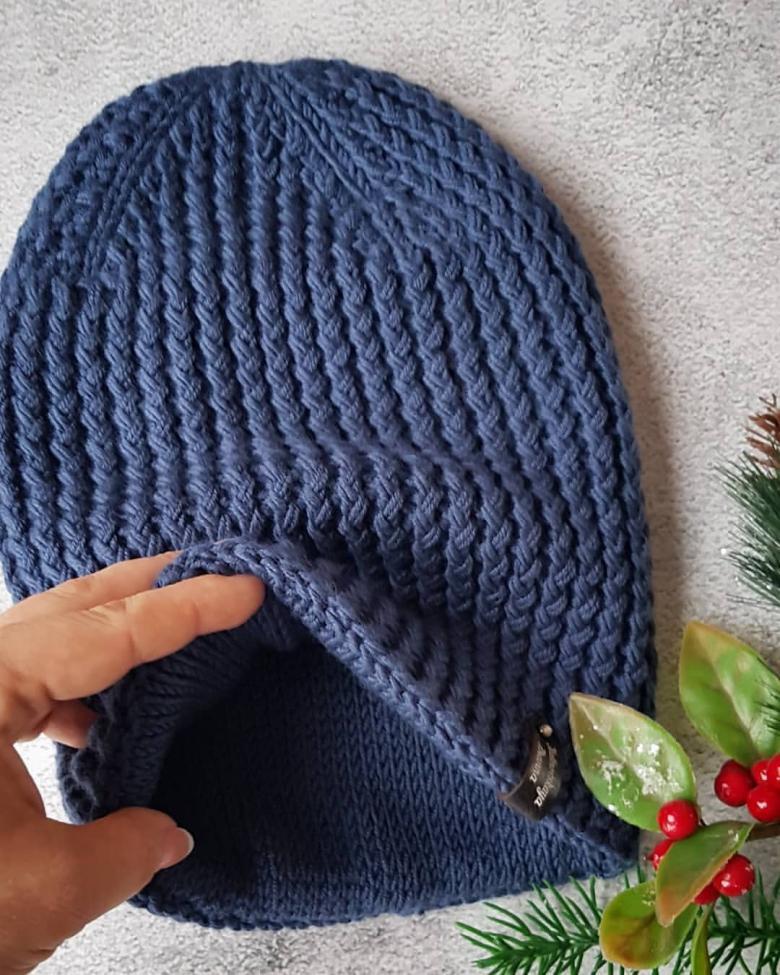 Avec une petite complication d'un bini classique, nous obtenons un chapeau à revers. Une texture particulière peut être obtenue en utilisant un semi-motif dans la base du tissu. Pour ce faire, vous avez besoin :