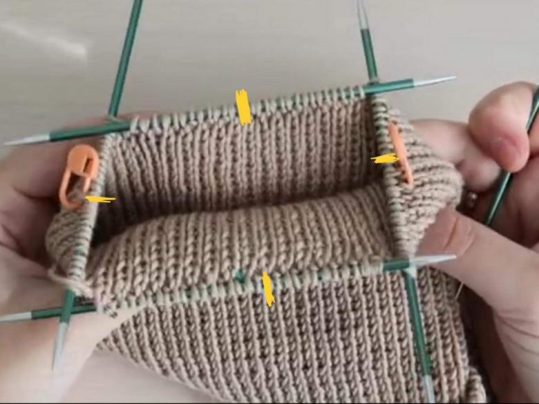 Il est préférable d'utiliser des aiguilles circulaires, car l'objectif est de créer un tissu solide et lisse. Les aiguilles à bas ne sont bonnes que pour tricoter l'aiguille à tricoter.