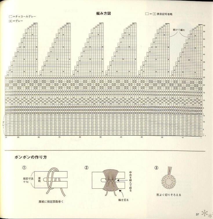 Cela permettra une transition en douceur vers un nouveau rang. Vous devez tricoter le motif sur environ 11 rangs - ce sera le haut du bonnet. Patron 11 rangs tricotés autant que le requiert la longueur du produit.