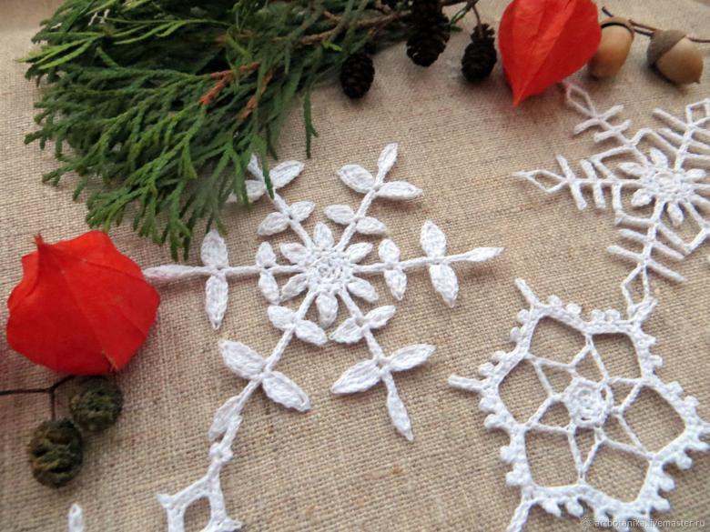 Une composition éthérée et délicate de flocons de neige constitue un excellent cadeau, notamment pour Noël et le Nouvel An. L'imagination peut vous aider à créer un véritable miracle, un chef-d'œuvre unique de simple fil.