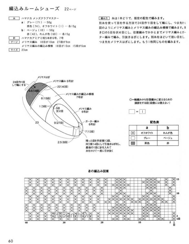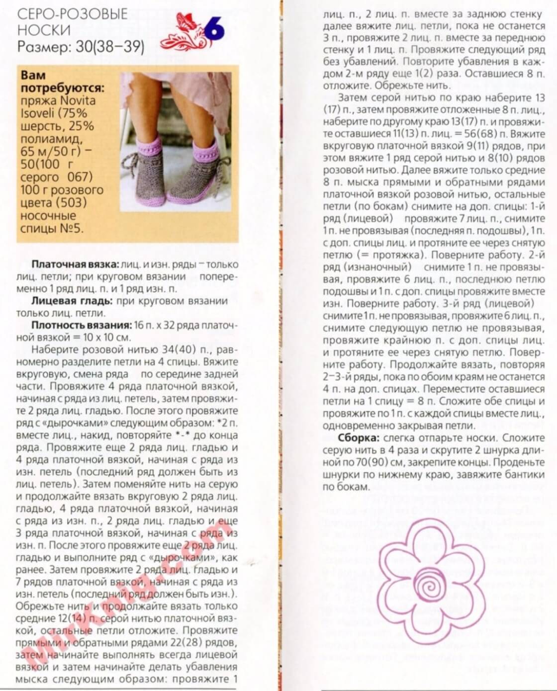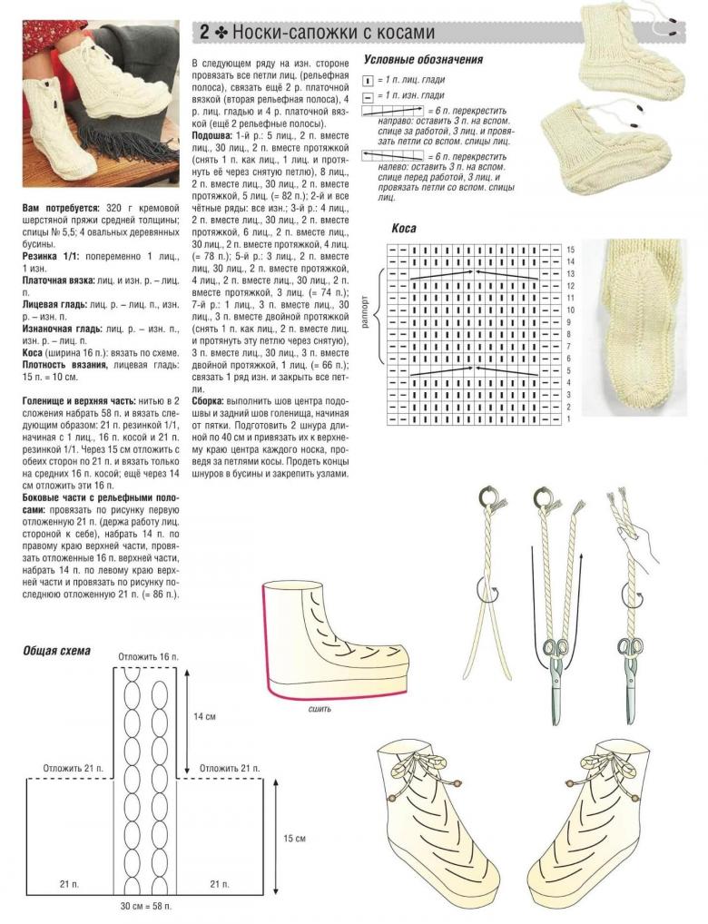 Il n'est pas difficile de tricoter des chaussons pour femmes avec seulement deux aiguilles. Pour la taille 38 - 39 doit prendre 2 pelotes de 100 grammes de fil de laine, aiguilles à tricoter sous le numéro 3. Ensuite, 13 boucles sur une aiguille et commencez à tricoter :