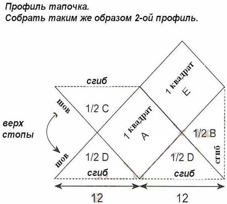 Le talon de la pantoufle est identique à l'orteil. Les 8 mailles restantes sont tricotées à la manière d'un châle et les mailles sont fermées. Le pied résultant peut éventuellement être décoré de divers éléments. Les chaussons au crochet sur deux rayons sans couture peuvent être réalisés en une journée.
