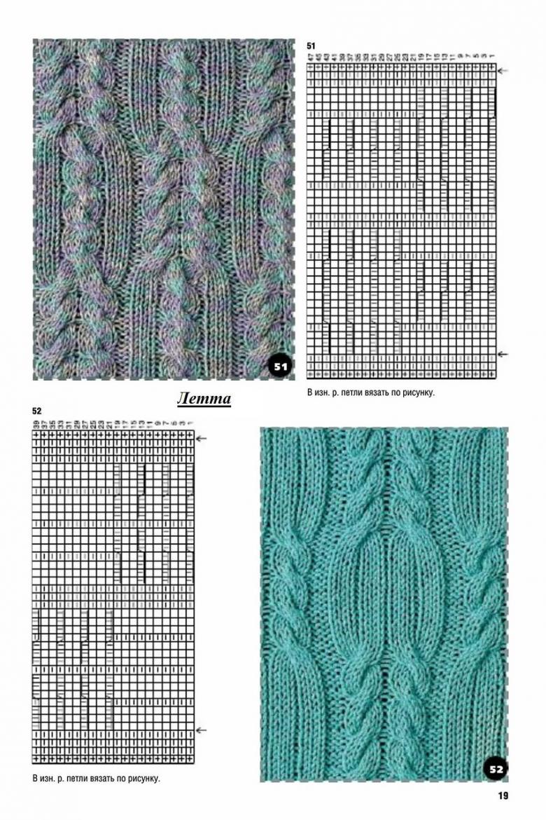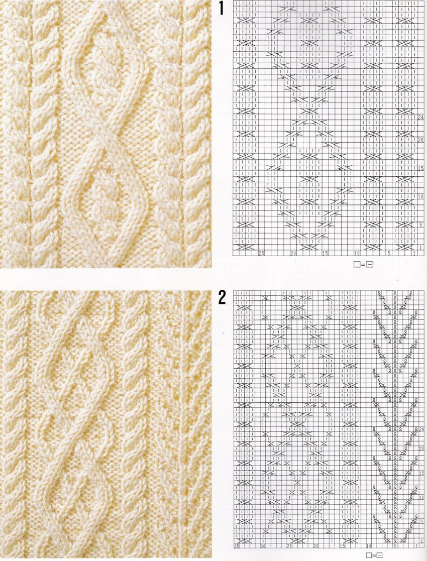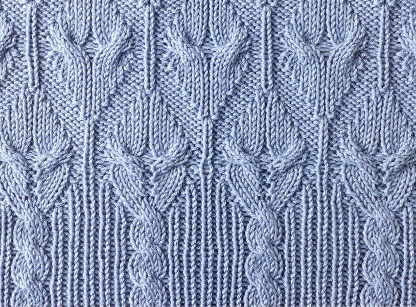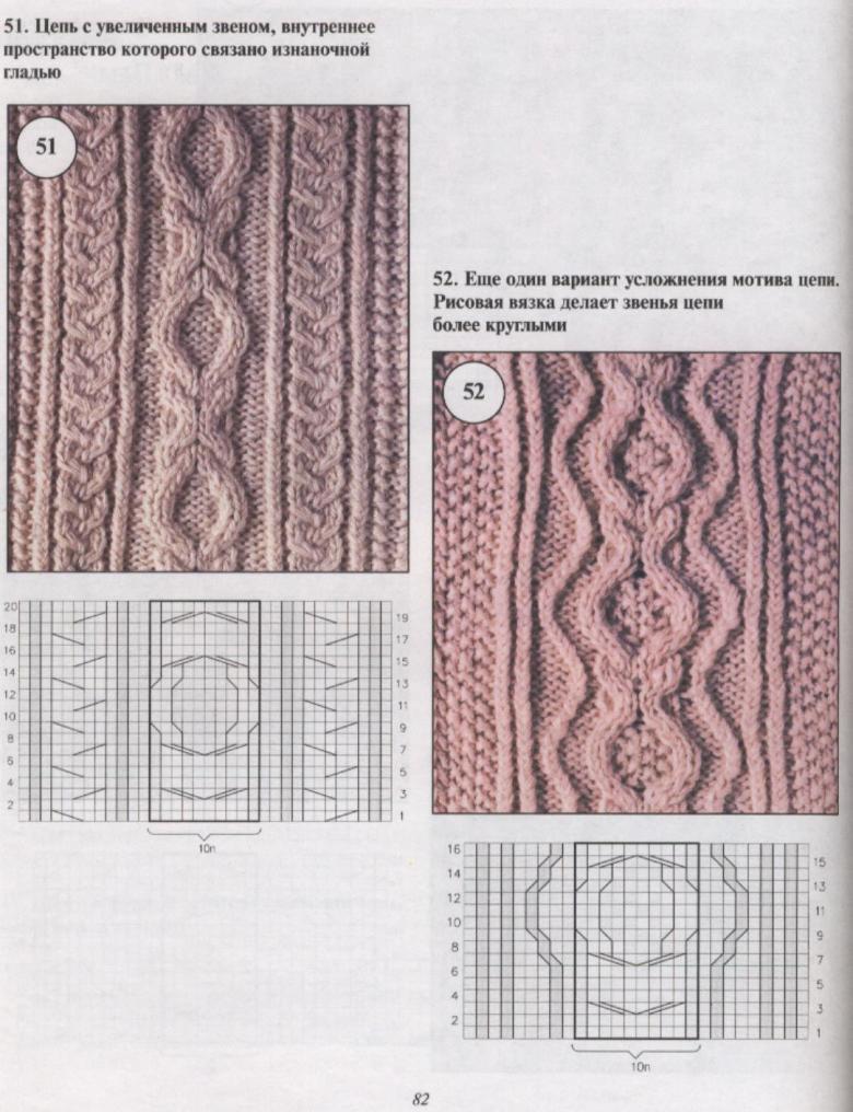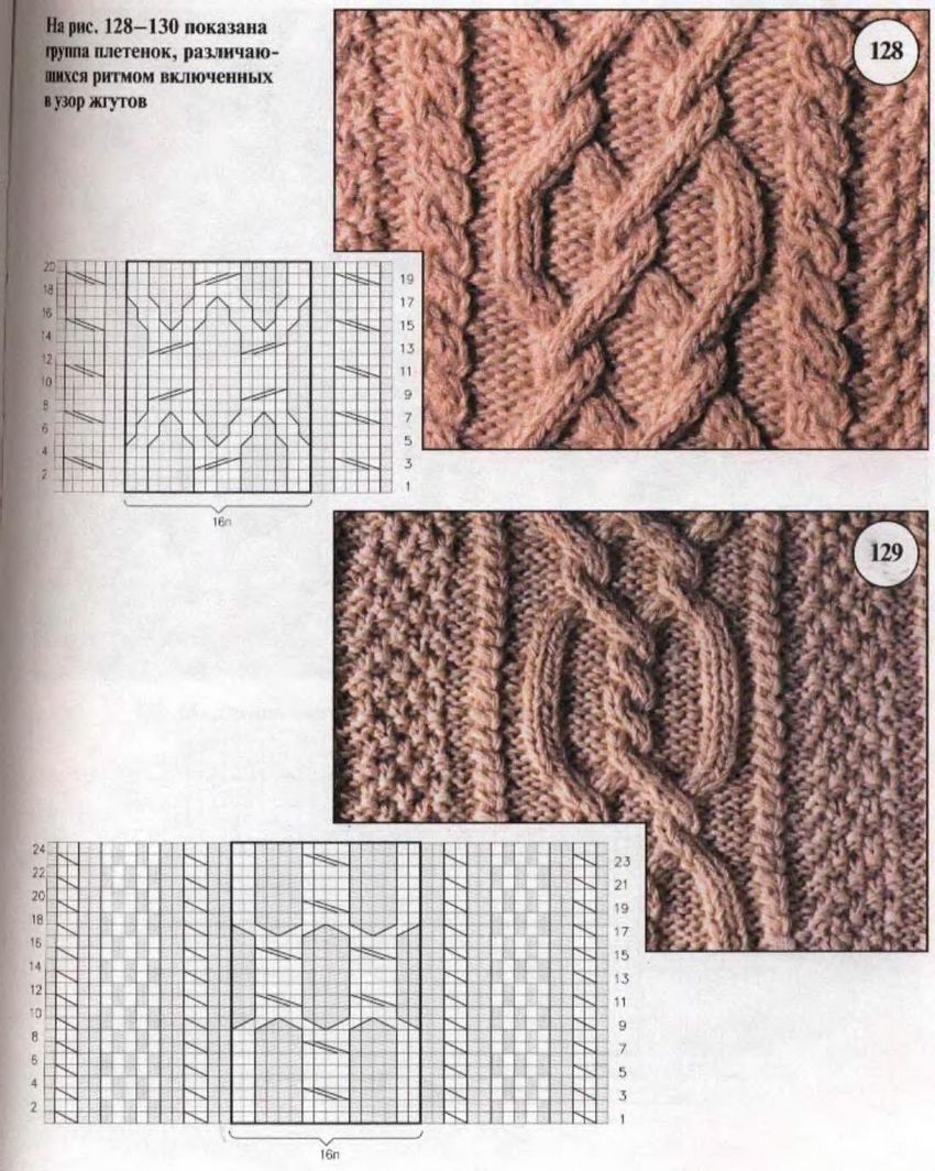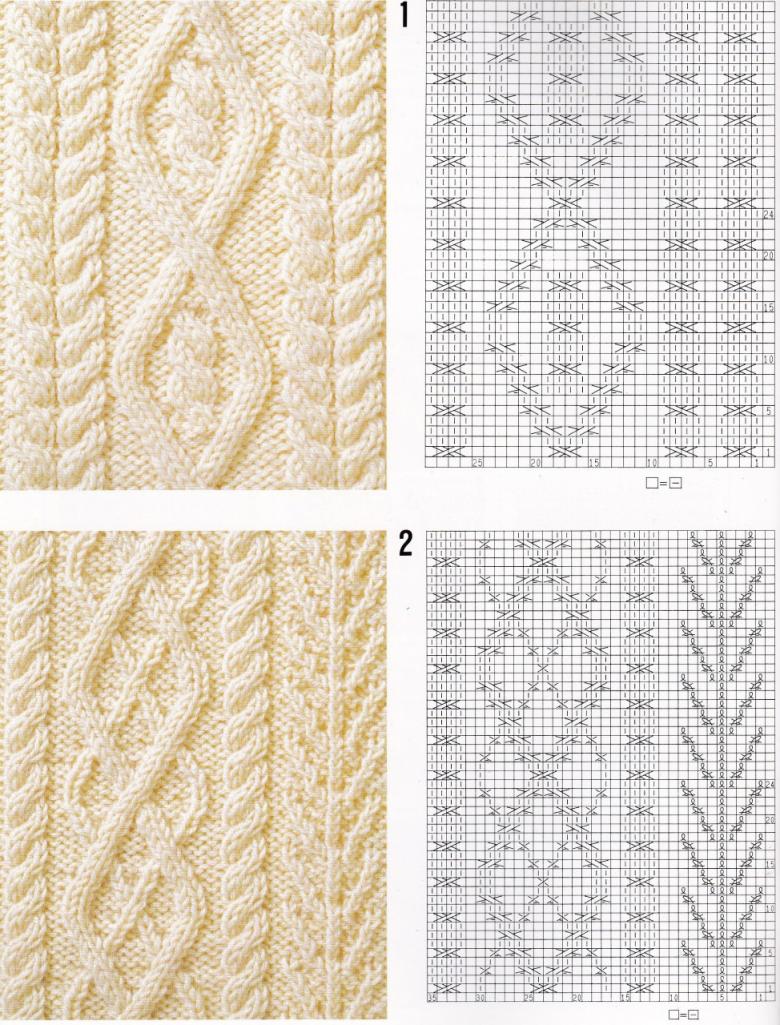 L'ensemble du motif complexe d'une grande pièce tricotée est constitué de tresses et de galons individuels. Les tresses sont des chevauchements simples de deux ou plusieurs boucles, à l'aide de rayons, tandis que les tresses sont constituées d'un motif entier de chevauchements, réalisés à la fois avec des rayons et des crochets, et assemblés en un grand motif entier. Les similitudes et les modes d'exécution de ces techniques permettent de les combiner en un seul type de motif.