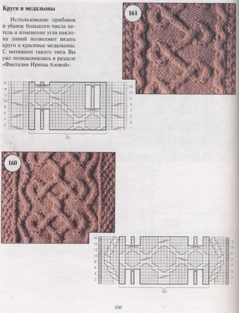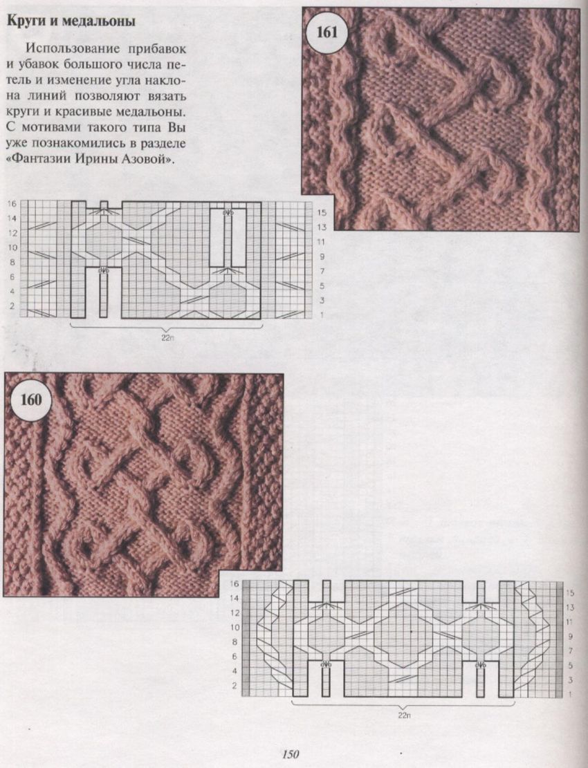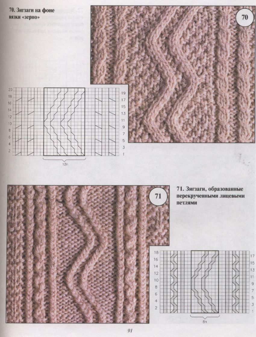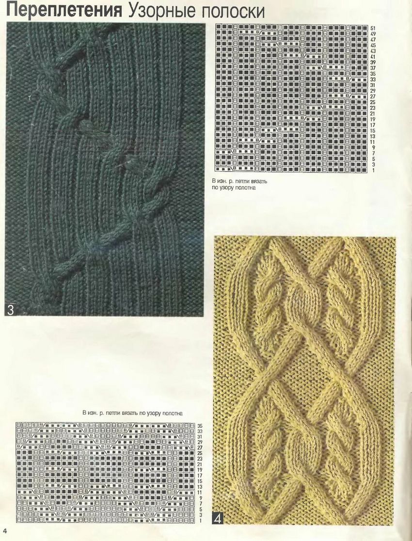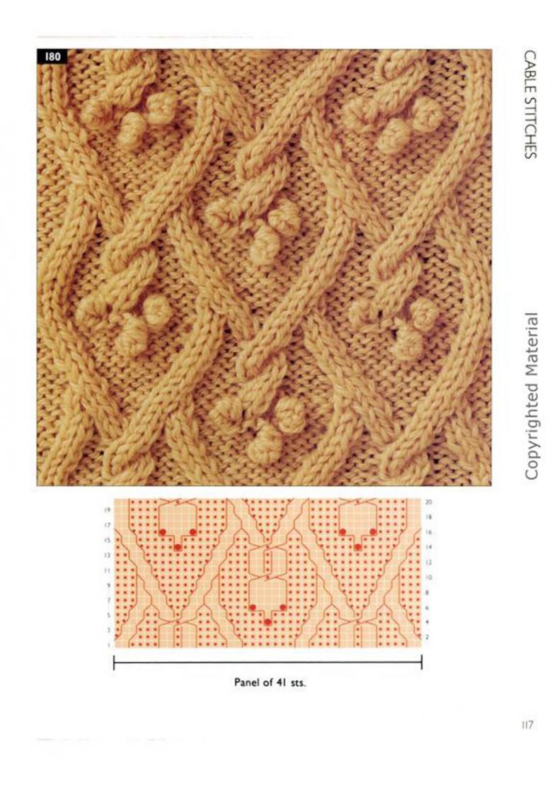 L'ensemble du motif complexe d'une grande pièce tricotée est constitué de tresses et de galons individuels. Les tresses sont des chevauchements simples de deux ou plusieurs boucles, à l'aide de rayons, tandis que les tresses sont constituées d'un motif entier de chevauchements, réalisés à la fois avec des rayons et des crochets, et assemblés en un grand motif entier. Les similitudes et les modes d'exécution de ces techniques permettent de les combiner en un seul type de motif.