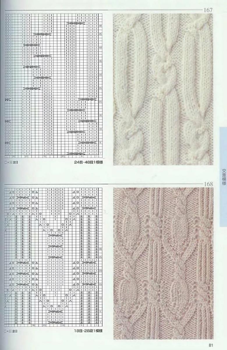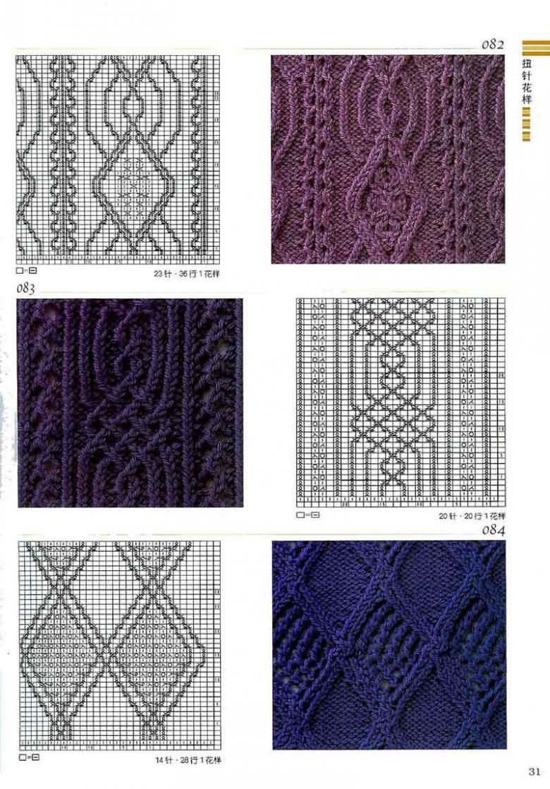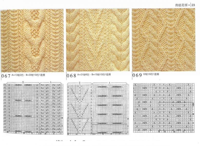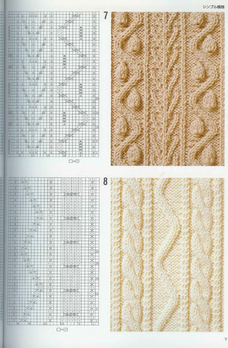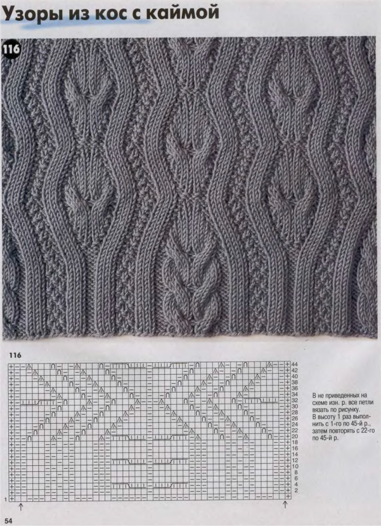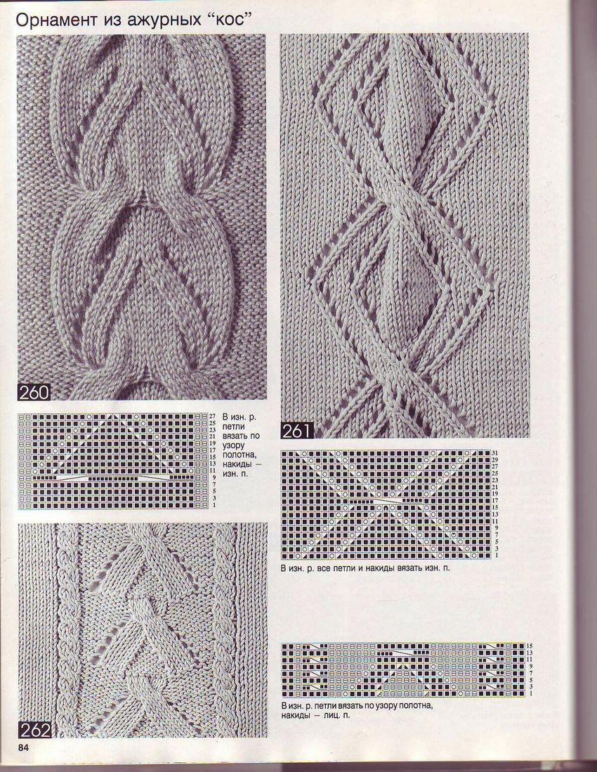 L'ensemble du motif complexe d'une grande pièce tricotée est constitué de tresses et de galons individuels. Les tresses sont des chevauchements simples de deux ou plusieurs boucles, à l'aide de rayons, tandis que les tresses sont constituées d'un motif entier de chevauchements, réalisés à la fois avec des rayons et des crochets, et assemblés en un grand motif entier. Les similitudes et les modes d'exécution de ces techniques permettent de les combiner en un seul type de motif.