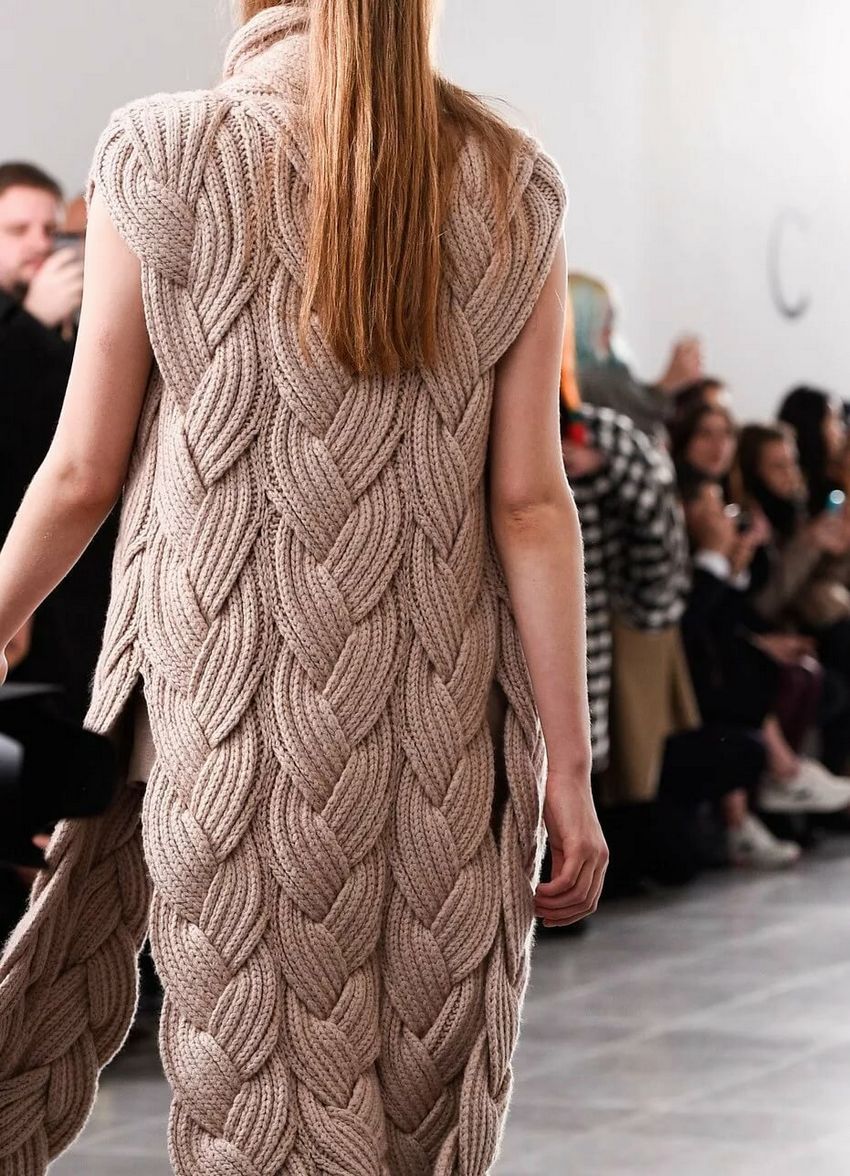 Le tricot en tresses est plus proche du tissage de cordes ou de cordages et se fait à l'aiguille ou au crochet. Il ressemble aux compositions que l'on trouve dans les coiffures, les tissages et les paniers traditionnels des peuples du Nord.