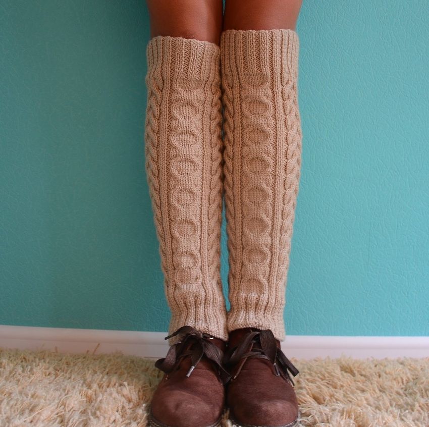 La description du schéma de tricotage commence par une mesure qui comprend les volumes du mollet, du tibia et de la jambe au sommet, ainsi que la hauteur totale. Sur deux rayons, un tel produit peut être tricoté sous la forme d'un rectangle, qui est ensuite cousu.