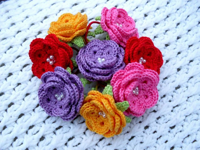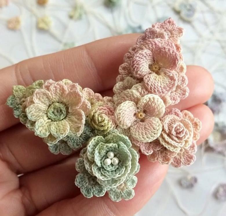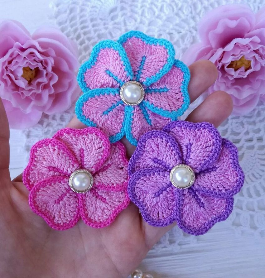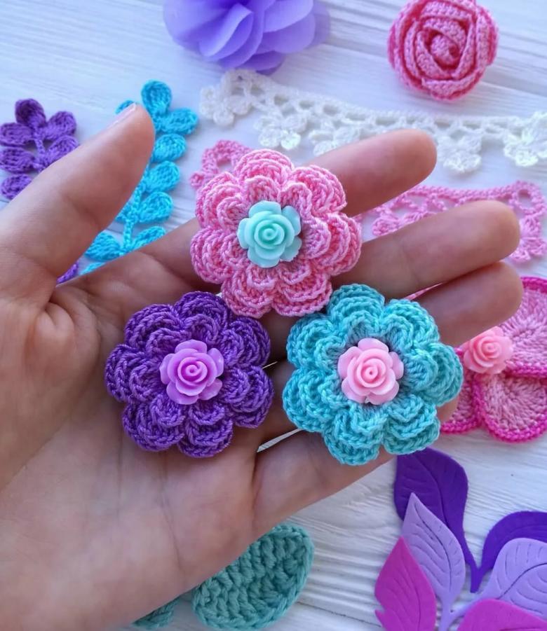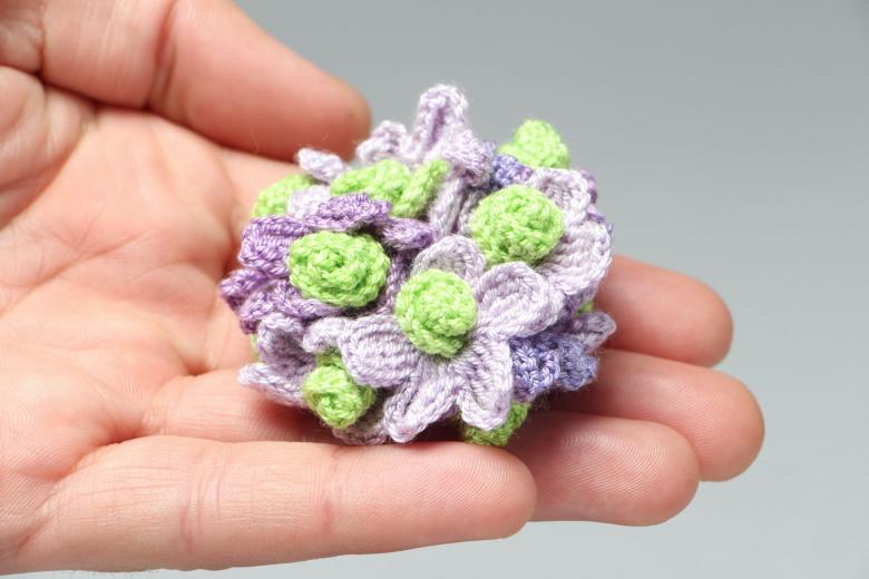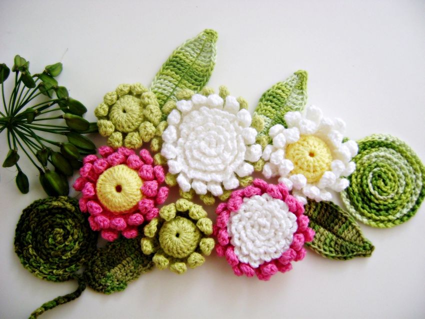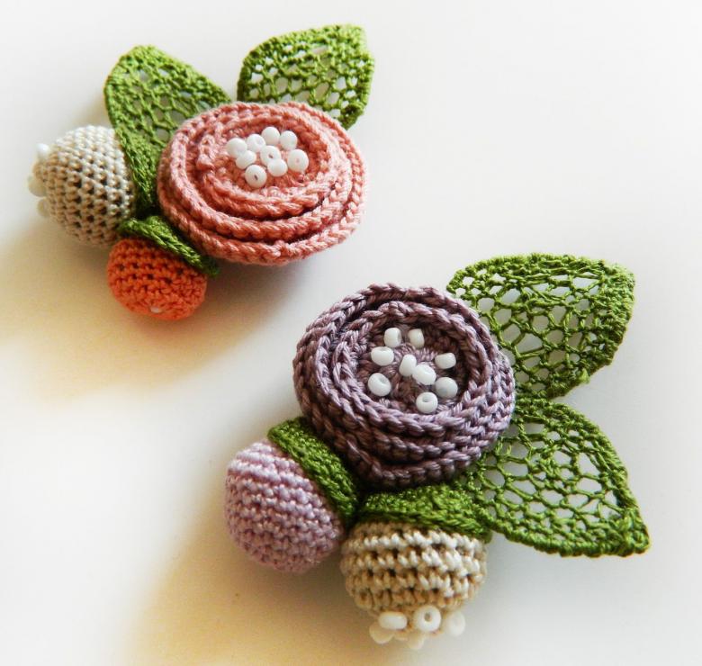 Un autre type de fleur qui peut être créé avec une technique de crochet est le petit bouton de fleur. Ils sont très populaires parce que ces produits peuvent être utilisés de manière absolument différente : pour une broche, une garniture pour les vêtements, pour les poupées et les jouets d'enfants, etc. La création de ces bouquets est rapide.