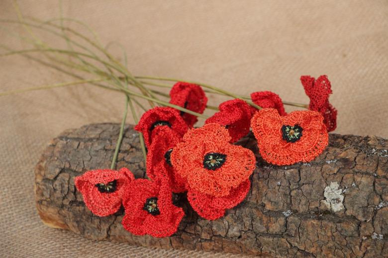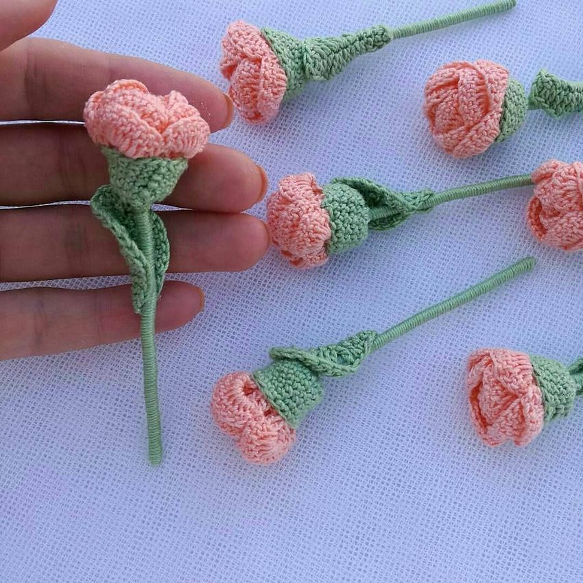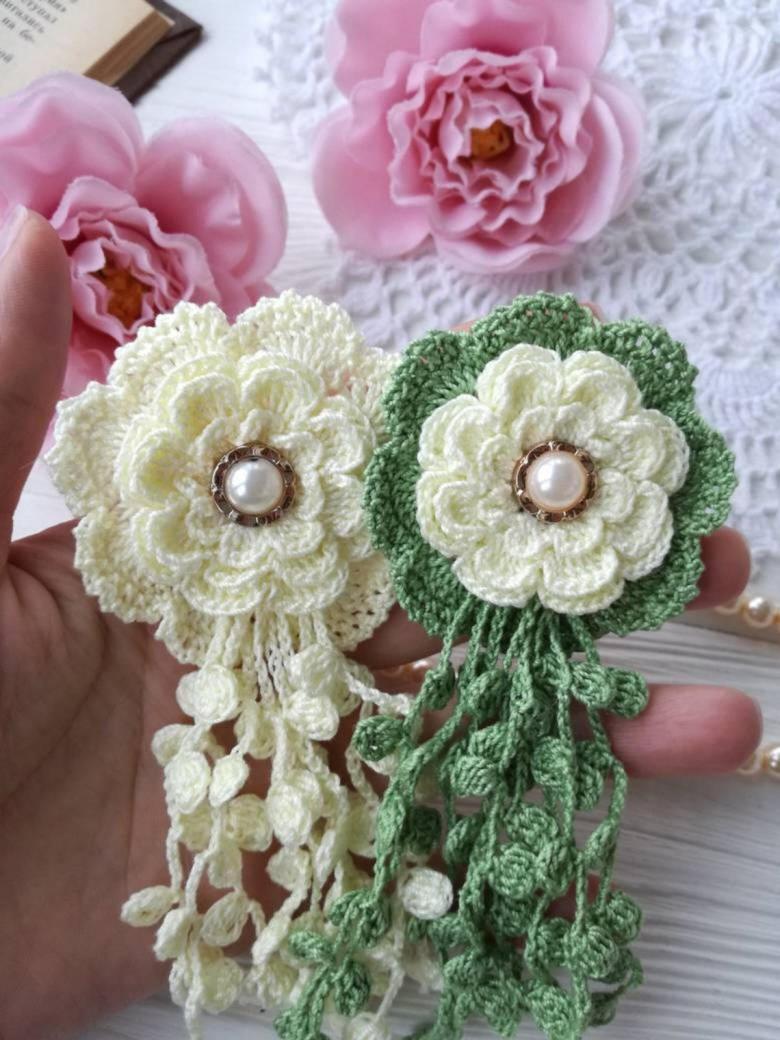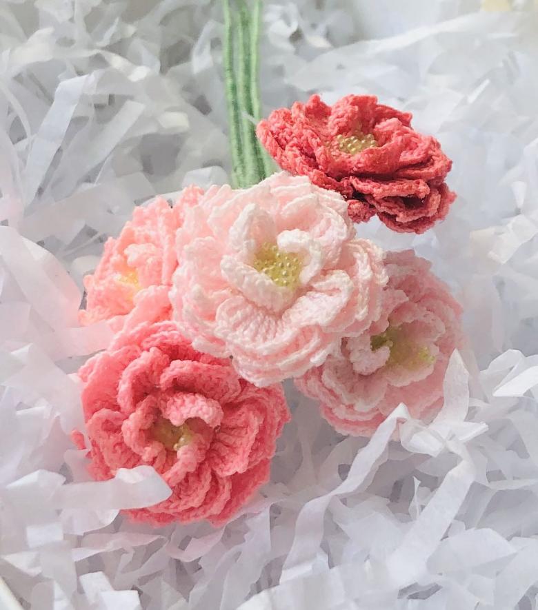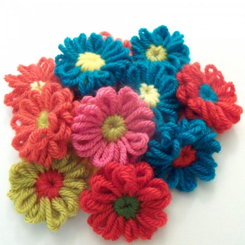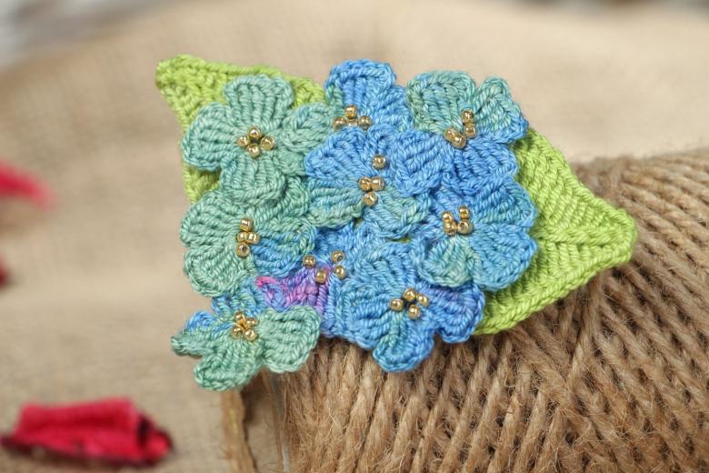 Un autre type de fleur qui peut être créé avec une technique de crochet est le petit bouton de fleur. Ils sont très populaires parce que ces produits peuvent être utilisés de manière absolument différente : pour une broche, une garniture pour les vêtements, pour les poupées et les jouets d'enfants, etc. La création de ces bouquets est rapide.