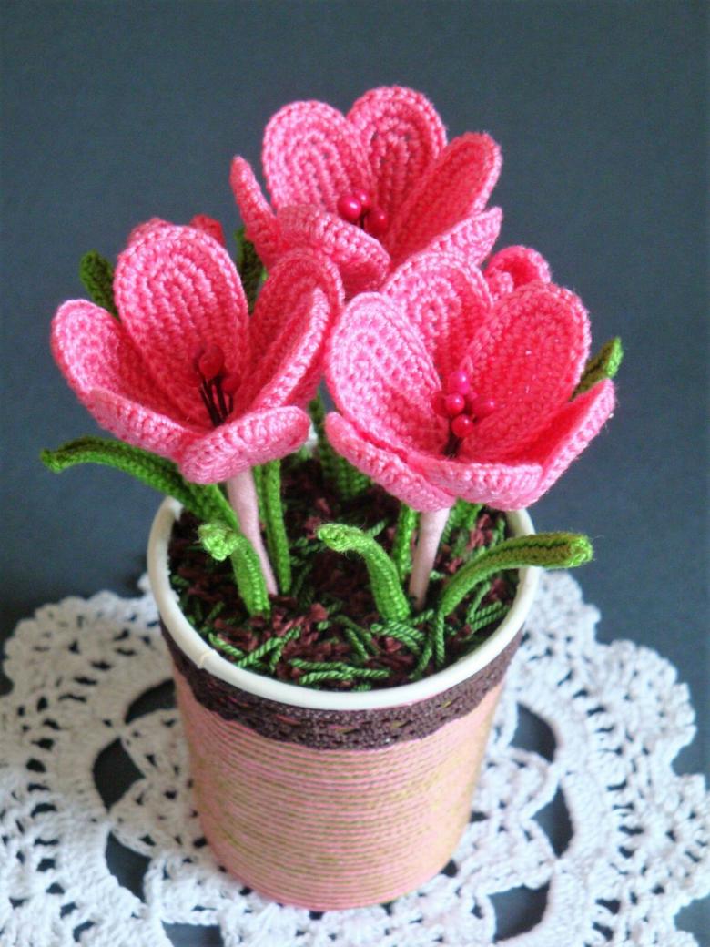 Le travail au crochet est facile et souvent même relaxant. Si vous avez déjà maîtrisé la technique du crochet, il est temps de commencer à apprendre à faire des bouquets, qui peuvent être utilisés comme éléments décoratifs pour des coiffures ou des tenues. En outre, les fleurs au crochet dans des pots peuvent constituer un cadeau charmant et distinctif.