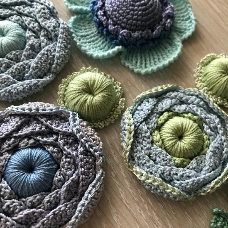- Ensuite, réalisez le deuxième bourgeon, un peu plus volumineux : changez le crochet pour le crochet n° 7 et choisissez un fil plus fin.
