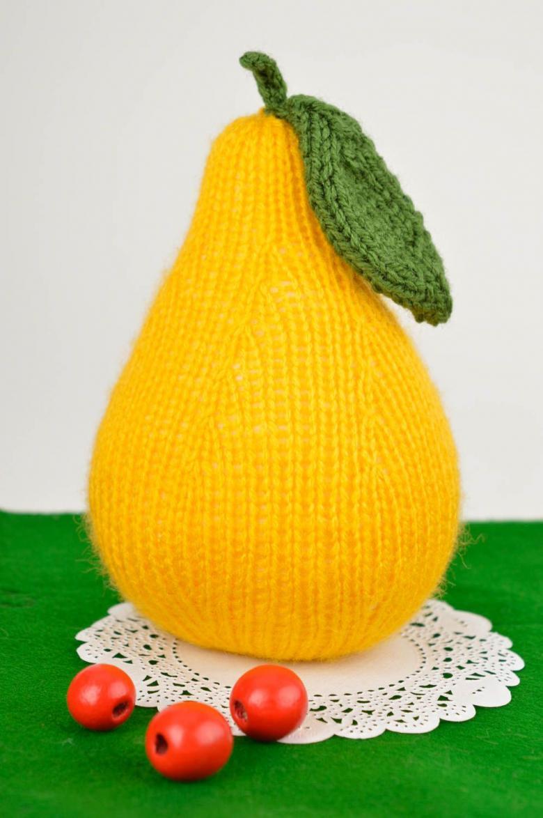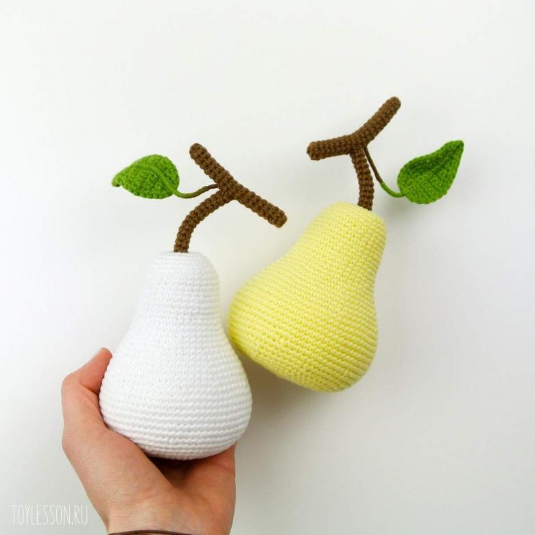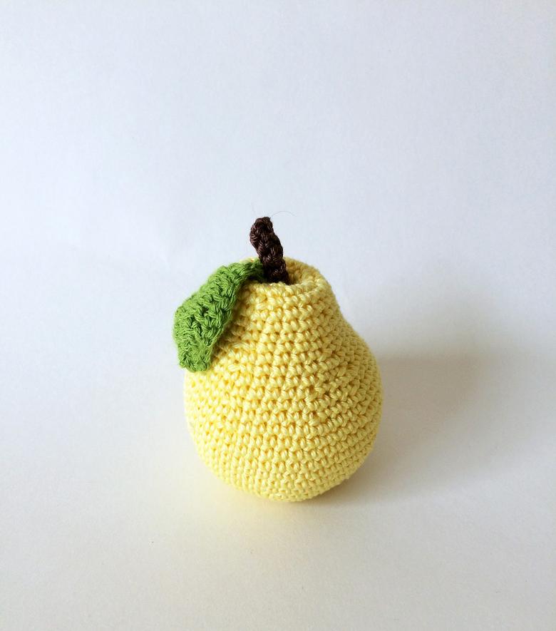 La poire crochetée finie sera un plaisir pour les yeux. Pour rendre la chose plus compréhensible, vous pouvez visionner une vidéo sur les jouets en crochet (fruits et légumes).