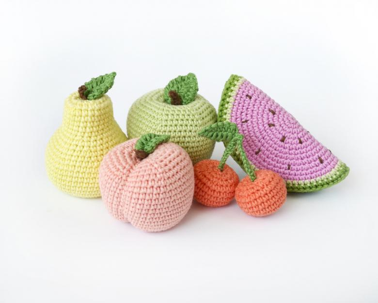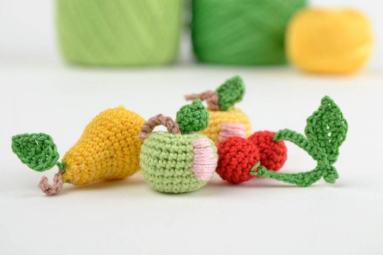 Il existe de nombreux modèles de crochet pour les fruits et légumes. Une pomme est considérée comme la plus facile à faire. Tout peut être utilisé comme garniture pour les fruits crochetés.