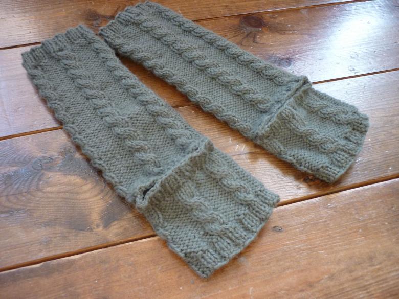 La variante la plus simple du modèle est la jambière reliée par des points de suture à l'endroit et à l'envers respectivement. La pièce finie est cousue en pliant chaque pièce en deux, l'envers vers l'extérieur.