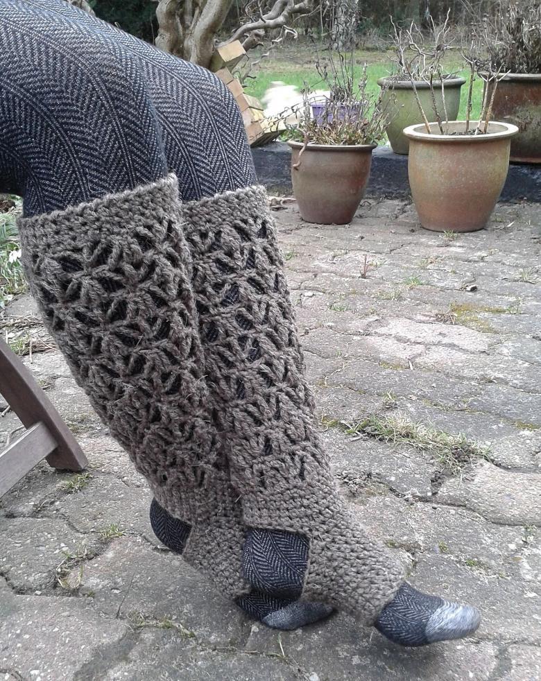 Après avoir étudié les schémas de tricotage des guêtres avec une description, vous pouvez passer au crochet, qui vous permet également de tricoter un analogue de chaussette en cercle. Le crochet donne une toile assez dense qui s'adaptera bien autour de la cheville.