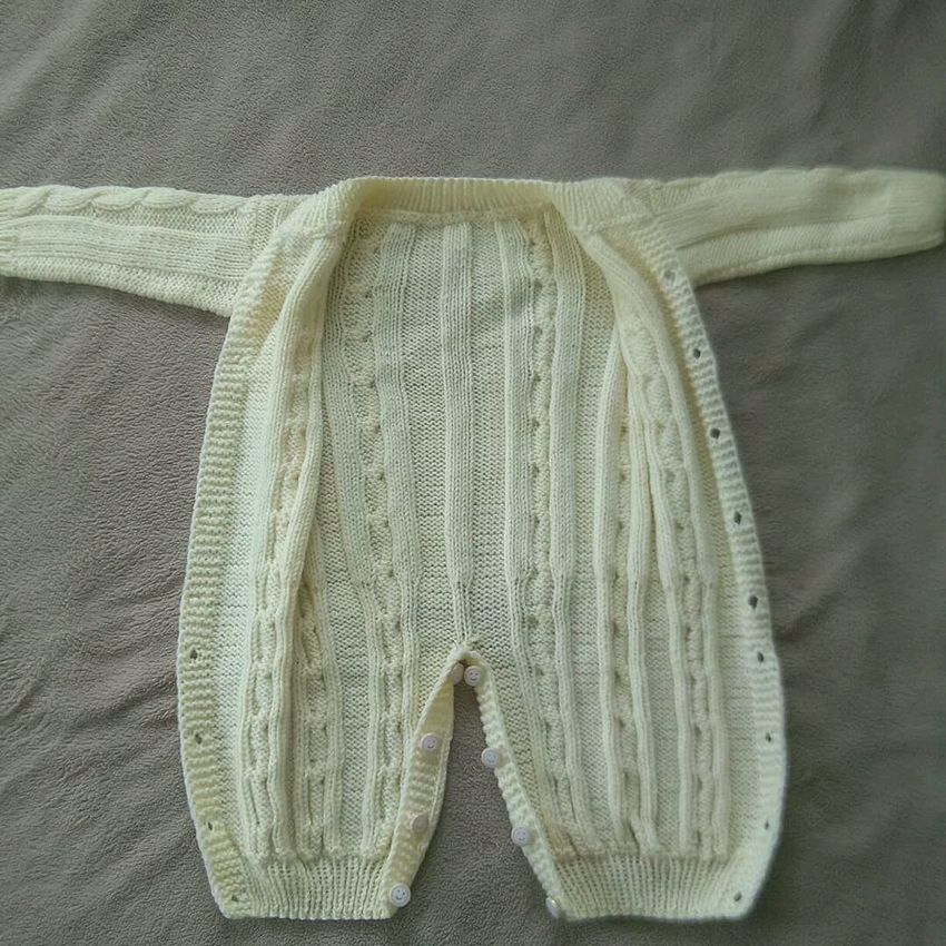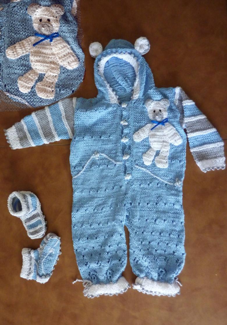 Voici un schéma détaillé du tricotage d'une combinaison pour un nouveau-né de 6 mois à un an dans la description :