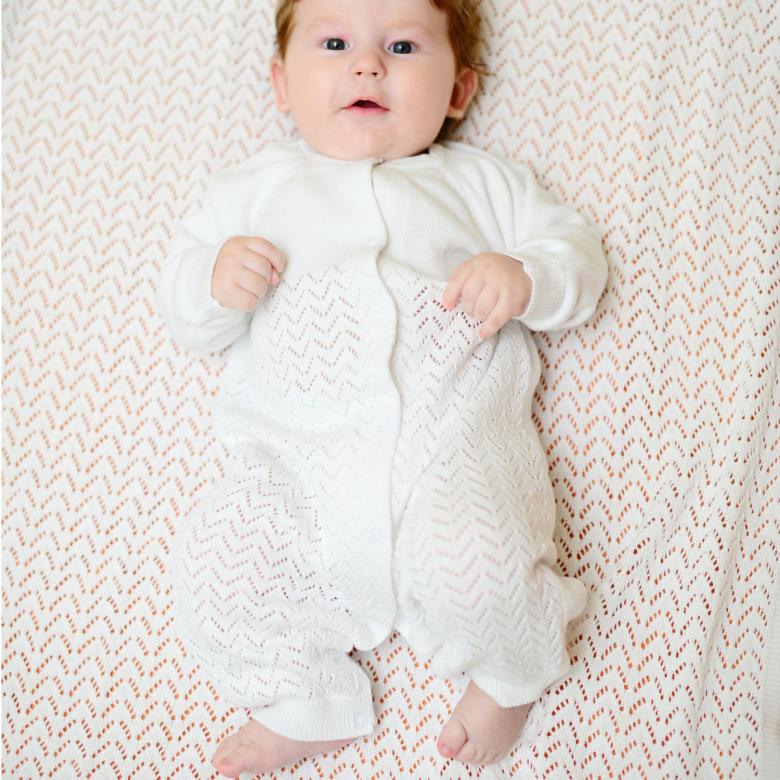 La grenouillère tricotée pour un nouveau-né pour la période estivale est réalisée en coton complet, car les mérites de ce fil méritent de noter les points suivants :